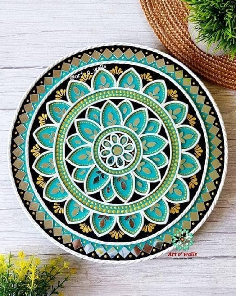 It’s time to paint your pattern after the clay has dried and the mirrors have been firmly positioned. Lippan art typically uses vivid, striking hues like red, yellow, green, and blue, but you can also choose colours that complement your home’s decor or your own personal style. For brilliant colours and long-lasting effects, use acrylic paints. To make your Lippan art come to life, carefully apply paint throughout the design and around the mirrors. Before putting your work on display, let the paint completely dry. You may develop your abilities and even produce increasingly complex pieces as you practise and try out various designs over time.